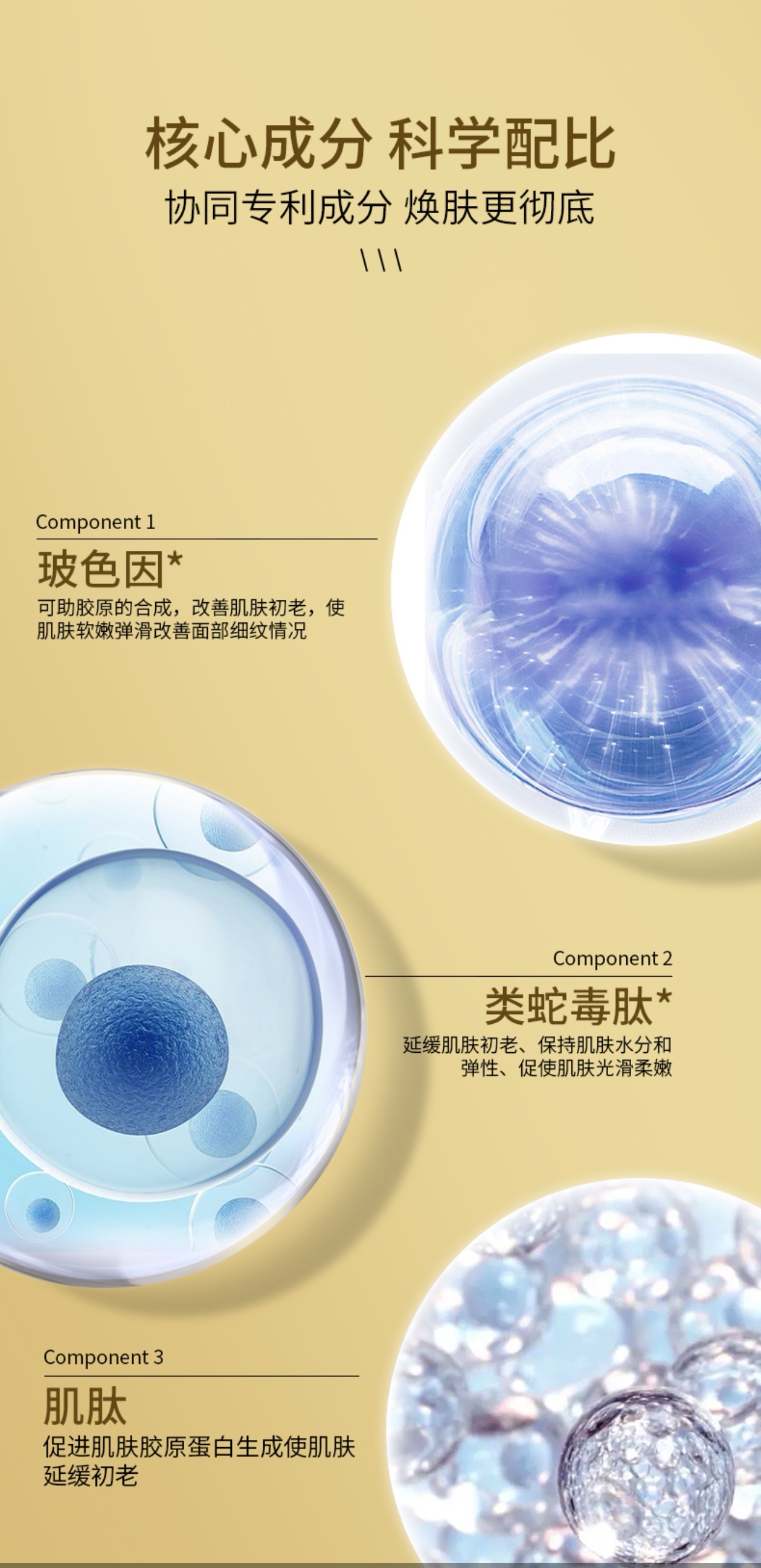 芋螺肽:对皮肤的作用主要是抗皱、延缓皮肤衰老等! 抗皱:芋螺肽是海洋软体动物的一种分泌物,如果涂抹于皮肤部位,可以加快局部的血液循环,能够加快局部的新陈代谢,可以一定程度的起到抗皱的作用。